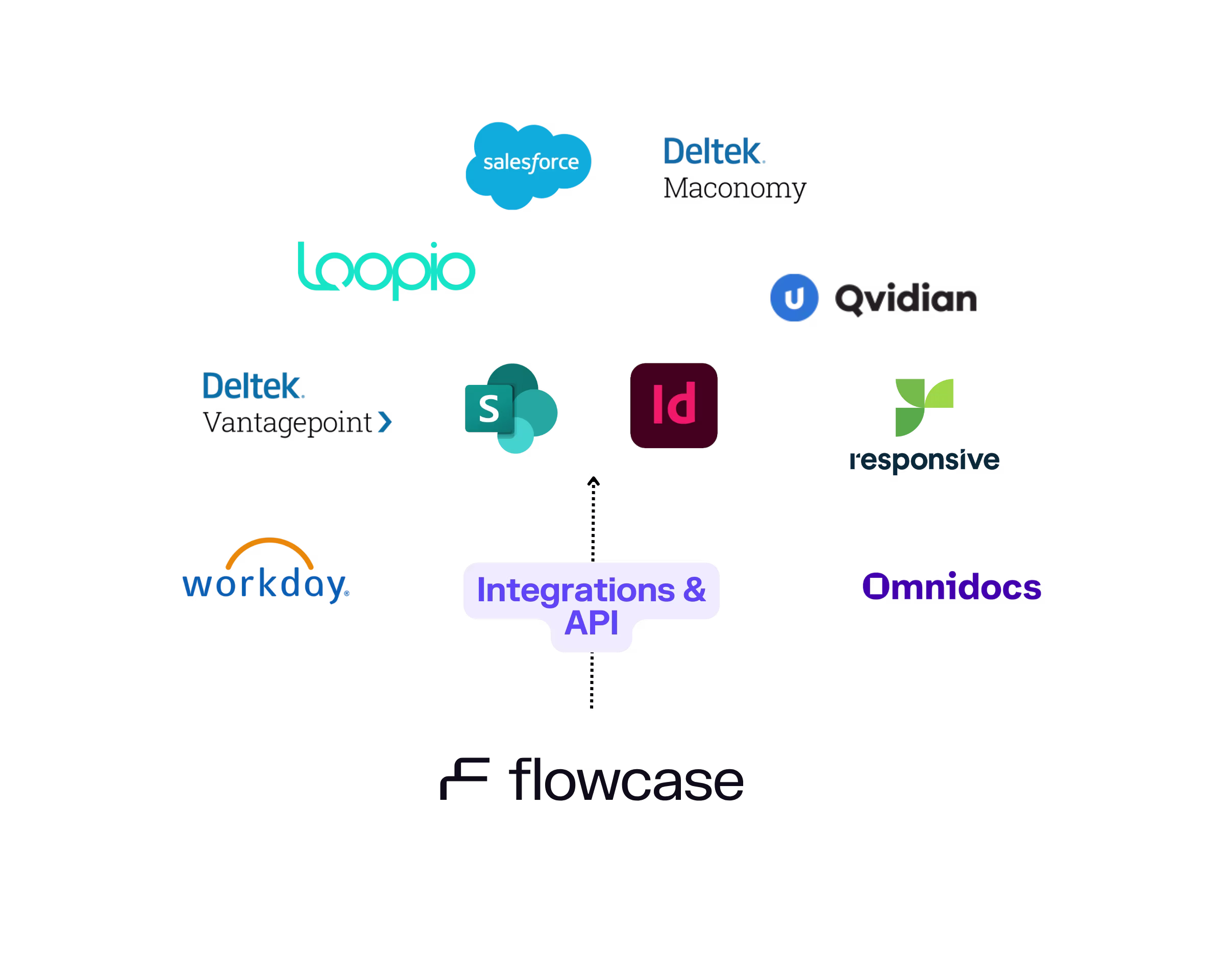 Flowcase er et best-of-breed værktøj, som kan integreres med jeres CRM-, ERP- og HR-værktøjer
